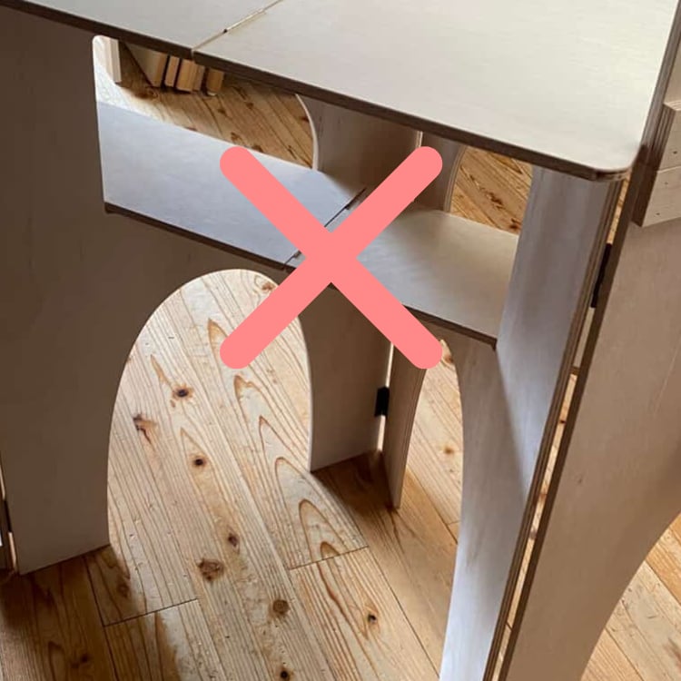 1)傾斜がある場所、フラットではない場所でご使用する場合は、ベニヤ板などで調整し、水平を保つようにしてください。